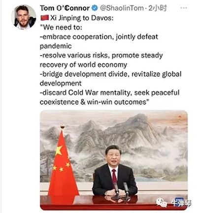 达沃斯论坛创始人兼执行主席施瓦布就说,中国领导人的演讲非常重要,对推动疫情下全球合作具有里程碑意义。通过对话与合作共同解决问题,是实现人类和平与繁荣的唯一途径。