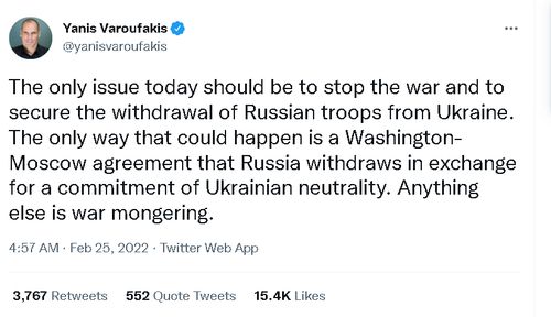 比如,他转发了希腊经济学院,希腊议会的左翼政党议员以及该国前金融部长瓦鲁法基斯(Yanis Varoufakis)的对于此事的看法。