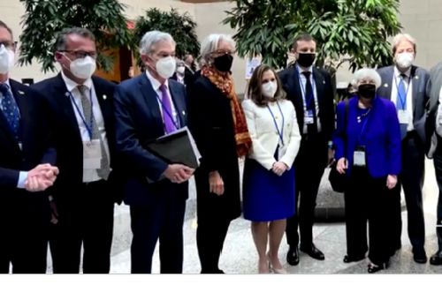 据媒体报道,在日前举行的G20各国财长和央行行长线上视频峰会中,轮到俄罗斯财长西卢阿诺夫发言的时候,美国财政部长、加拿大财长及英国银行行长突然起身离开会场,而“受邀”进来的乌克兰代表也一起退场。这之后,加拿大财长方慧兰还在自己的社交媒体上发出了离场照片,颇为志得意满。