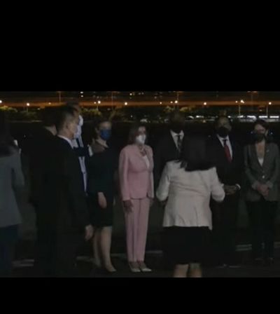 佩洛西窜访台湾,抵达机场画面(直播截图)
