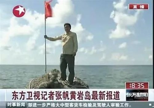 相关照片曝光后,引发了全中国的愤怒,中国记者立刻登上黄岩岛,插上中国国旗。
