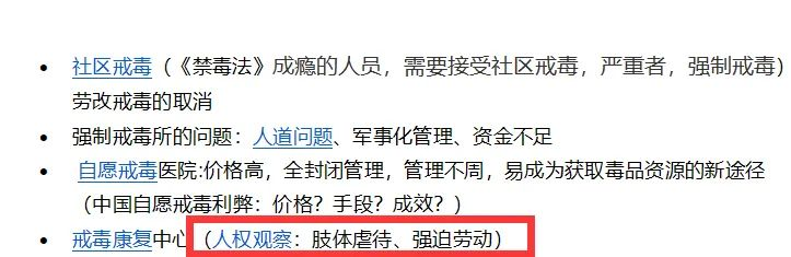 宣扬“中国对吸毒者的犯罪化”,以及强调吸毒者受到的社会歧视。