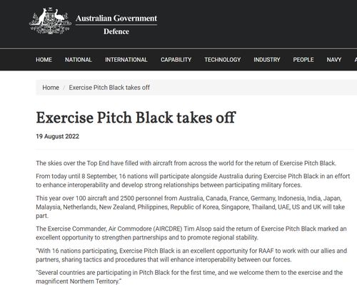 虽然澳皇家空军以及包括澳媒在内的一些媒体事先宣扬已久,澳国防部通稿还是相当详细地复述了一遍军演相关信息: