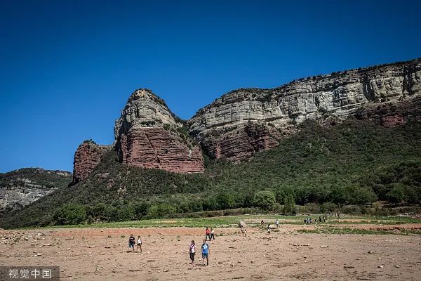 当地时间2022年8月20日,西班牙维拉诺瓦德索,干旱导致水库的水位较低,游客在岸边行走。在整个欧洲创下高温记录的干旱夏季中,欧洲大陆的河流正在蒸发。
