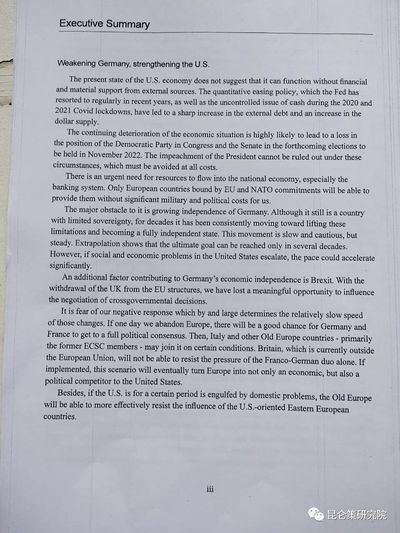 这在第二部分余下内容里有所体现。余下部分主要就是分析了如何让德国不可避免地掉入这个陷阱,我们就不赘述了,因为现实比报告更触目惊心。