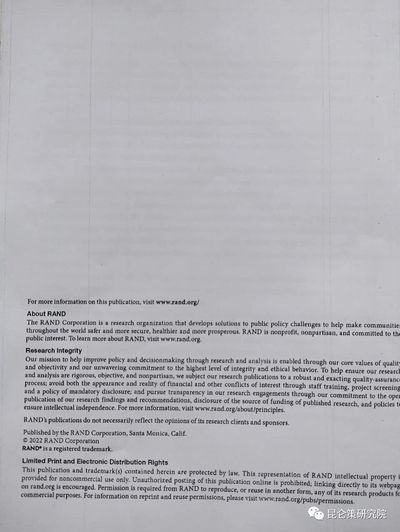 这份文件出自兰德智库之手,也正是因为这个原因,我们才会比较重视。