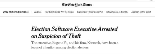 尽管目前调查还在继续,且当地官方披露的具体信息很少,但这家名叫Konnech的公司的华裔老板于建伟(Eugene Yu),却被当地官方以“涉嫌盗窃个人信息”的罪名先行逮捕了。