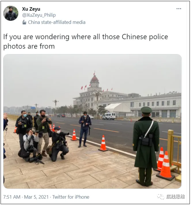 两会期间,外媒记者将镜头对准中国武警,完成他们想要的“完美构图”。