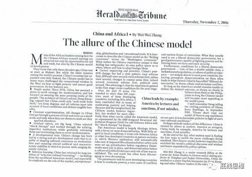 “中国模式的魅力”,当时《纽约时报》国际版称《国际先驱论坛报》