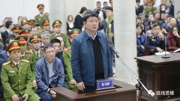 2018年1月8日,河内市法院开庭审理丁罗升、郑春青等石油系统贪腐案。这是越共中央政治局原委员丁罗升受审画面。(图/越媒)