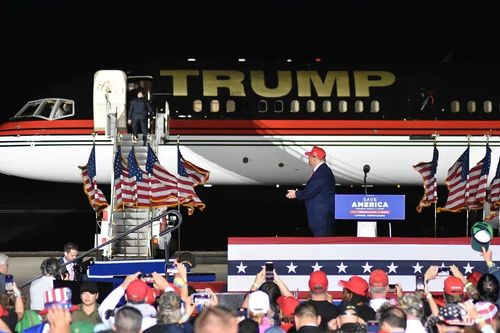 当地时间2022年11月6日,美国宾夕法尼亚州拉特罗布,第45任美国总统特朗普在机场举行集会 图源:视觉中国