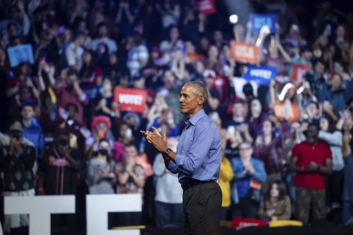 当地时间2022年11月6日,美国宾夕法尼亚州费城,第44任美国总统奥巴马在竞选集会上。图源:视觉中国