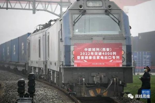 11月23日,满载家电产品的中欧班列在西安国际港站等待发车。新华社记者 李一博 摄