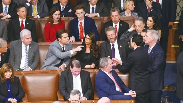 新一届国会3日开幕后,由众议院共和党右翼“强硬派”领头的约20人小团体一直拒绝投票给麦卡锡,导致议长“难产”、众议院“瘫痪”,僵局直到6日下午第12、13轮表决才开始松动,众议院随后休会,双方继续讨价还价。