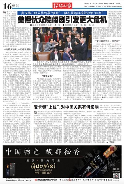 “麦卡锡当上众议长,只用胡萝卜没用大棒”,《纽约时报》7日称,这或许是麦卡锡政治生涯中最“痛苦”、最“关键”的一周,也再次确认了他的盟友和批评者都熟知的形象:和蔼可亲的班长类型,更擅长拍马屁和谋划政治策略,而不是制定政策或操纵立法。《华盛顿邮报》则直指麦卡锡与“劫持”自己的人达成的是“魔鬼交易”。