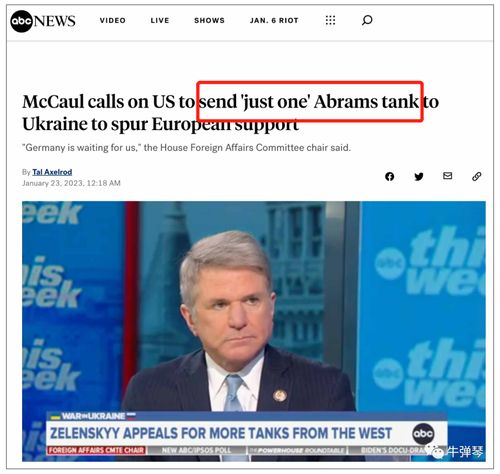 麦考尔认为:美国可以宣布,向乌克兰提供一辆M1主战坦克,一辆就够了,这样,美国人可以说,我们已经履行了德国设定的条件,德国你可不能耍赖,乖乖给乌克兰提供几百辆豹2坦克吧。