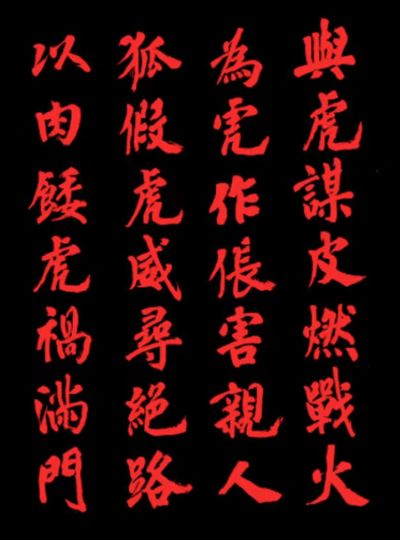 在东部战区周一发布的另一则视频中,最后是一首用繁体字写就的诗:“与虎谋皮燃战火,为虎作伥害亲人,狐假虎威寻绝路,以肉餧虎祸满门。”