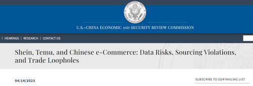 日前,美国国会下属的美中经济与安全审议委员会(USCC)发布分析师报告,声称跨境电商平台Shein、Temu 及其他中国电商存在数据安全、采购违规和侵犯知识产权等问题。报告还“建议”美国政府应保持警惕,严防中国企业被赋予相对美国公司的“不公平优势”。