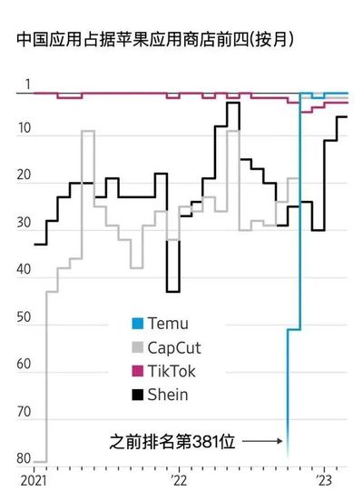 例如行业统计机构Sensor Tower数据显示,今年3月前三周,美国应用商店下载量排名前五的热门APP中,有四个来自中国——很巧的是,近期得到美国国会“特殊关照”的Temu、Shein和TikTok,全部名列其中。