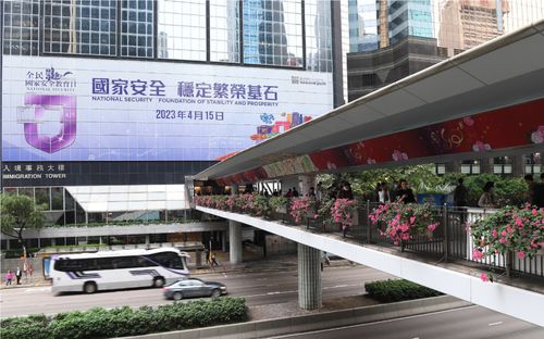 香港国安法实施后,香港法治环境更加稳定。图为4月4日拍摄的香港入境事务大楼外墙上的 “全民国家安全教育日”广告(图:新华社)