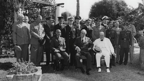 ▲ 中美英三国在埃及首都开罗举行会议后,于1943年12月1日发表对日作战的新闻公报,通称《开罗宣言》。