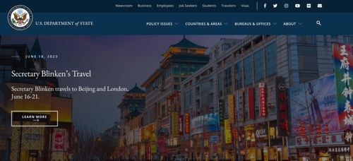 ▲ 布林肯访华期间,美国国务院官网背景换成了北京街景。