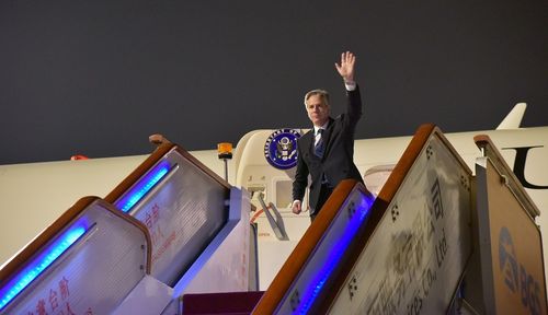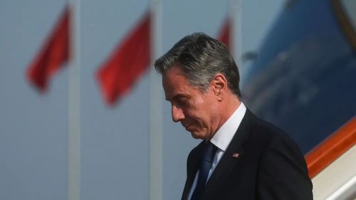 ▲ 2023年6月18日,美国国务卿布林肯抵达北京,走下飞机。
