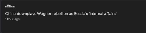 然而,一些特别喜欢干涉别国内政的英美媒体,在看到中方的这一表态后却坐不住了。如下图所示,英国的《卫报》就发表了一篇颇为非常奇葩的文章,称中方将瓦格纳事件定性为俄罗斯的内政,是在“淡化”此事。