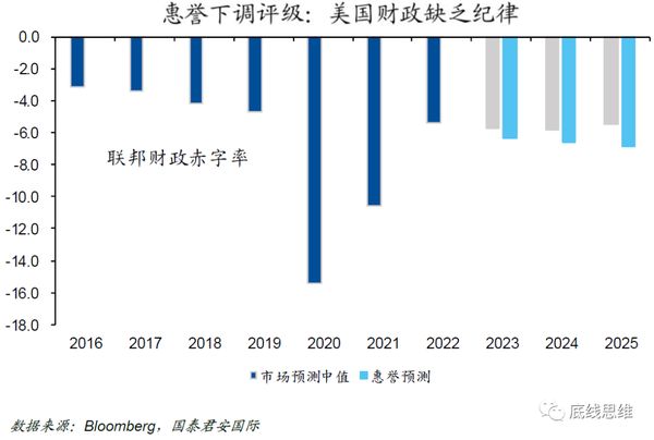 反倒是美国政府跳的比较急。耶伦很着急,说惠誉是基于错误数据给出了一份不当评估报告等等。有人也指出,惠誉没有在美国国债上限两党吵得最凶的时候下调评级,说明它不是为了打击美国国债,不是为了让资本市场承压,而是要给华盛顿的政治人物一个明确警告——一切的行动和言行不要触及美国自身的实体性利益,尤其是不要触及资本根本利益的边界或红线,资本要求的是赚钱。
