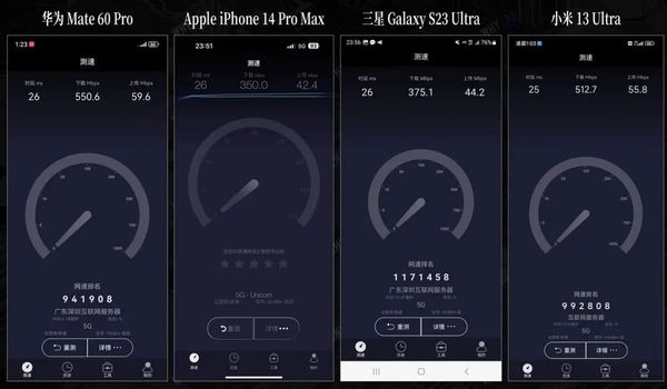 用太多话也无法表达小编此刻的心情,就看这一张图,看华为Mate 60 Pro的5G网络测试,是如何暴打当前各大品牌5G旗舰手机的: