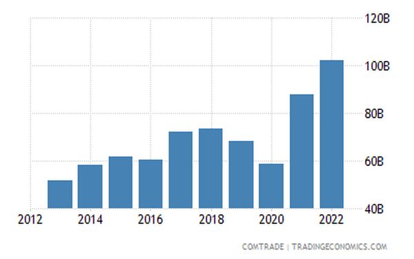 印度从中国进口额历年变化情况 数据来源:联合国商品贸易统计数据库(UN Comtrade)