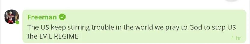 “美国一直在世界上制造麻烦,我们祈祷上帝阻止美国这一邪恶政权。”