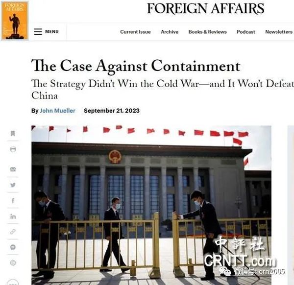 外交事务杂志发表穆勒文章:遏制战略没有赢得冷战,也打败不了中国