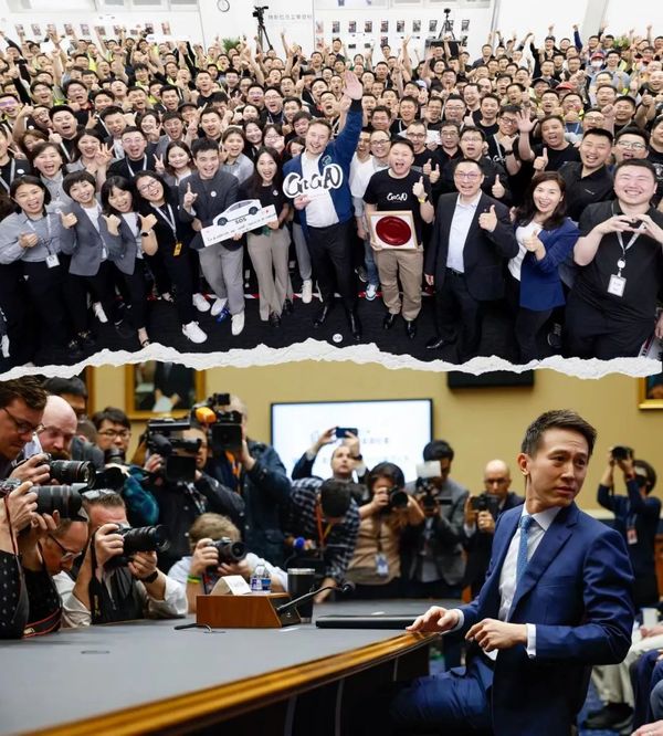 ▲ 上图为2023年5月,特斯拉首席执行官马斯克到访特斯拉上海超级工厂,受到热烈欢迎;下图为2023年3月,TikTok首席执行官周受资在美国国会听证会上遭到轮番盘问。