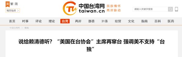 说给赖清德听?“美国在台协会”主席再窜台,强调美不支持“台独”。