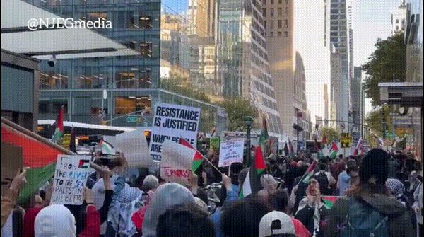 ▲ 2023年10月,群众走上美国纽约街头,支持巴勒斯坦抵抗运动,反对美国和以色列对巴勒斯坦的非人道行径。