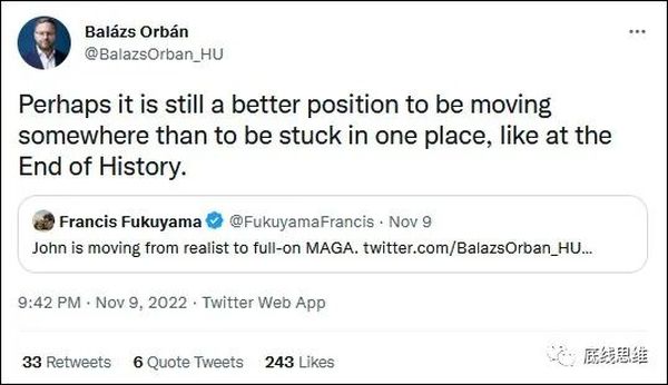 巴拉兹在推特“回怼”福山:比你困在“历史终结论”里好。