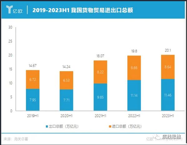 2019-2023年上半年进出口总值走势数据