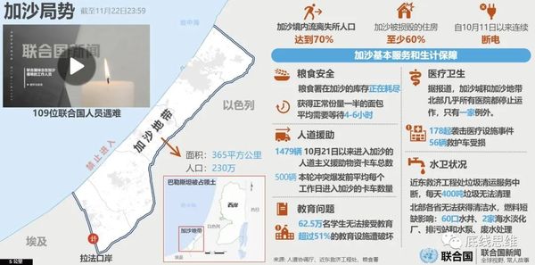另外联合国在人道主义援助方面发挥着重要的作用,特别是联合国近东巴勒斯坦难民救济和工程处,这是1949年就成立的机构,第一次中东战争后就成立了,加沙地区的百分之六七十的居民就是拿各种各样的联合国救济才活下来的。11月13日,联合国总部和世界各地的办事处降半旗病举行默哀仪式,悼念因巴以冲突在加沙遇难的101名联合国近东巴勒斯坦难民救济和工程处工作人员,这是联合国78年历史上最大的人员损失,这是极不得人心的。