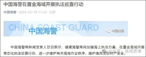 在群情愤慨之下,大陆官方在谴责之外启动实质性执法行动,宣布不承认金门的所谓“禁止、限制水域”,并进行厦金海域的常态化海巡执法行动,维护渔民安全和有关海域管辖秩序。
