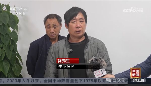 大陆渔船生还成员徐先生:渔船被撞翻,差点丧命(图片来源:央视视频截图)