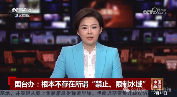 国台办:根本不存在所谓“禁止、限制水域”(图片来源:央视视频截图)