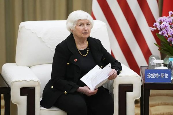 2024年4月6日,广州,美国财政部长珍妮特·耶伦在会谈中。(视觉中国)