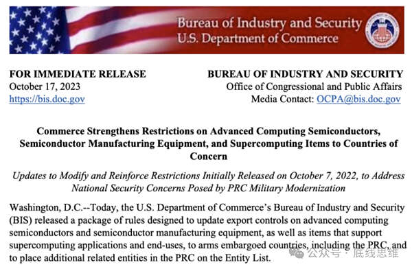美国对21个国家提出了芯片制造设备的许可要求,并扩大了禁止进入这些国家的设备清单。此举旨在限制中国的14纳米以下先进芯片的制造能力。(图源:美国商务部)