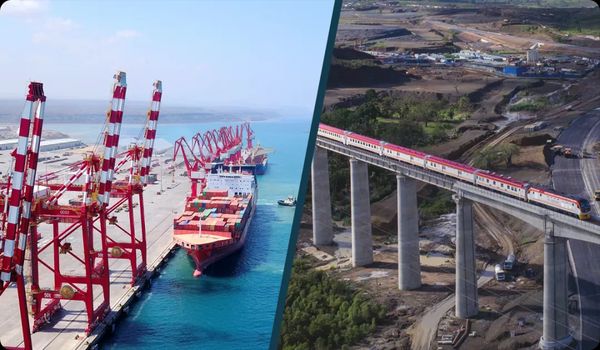 ||吉布提港口(左)和联通东非的蒙内铁路(右)