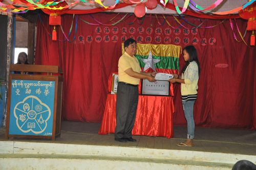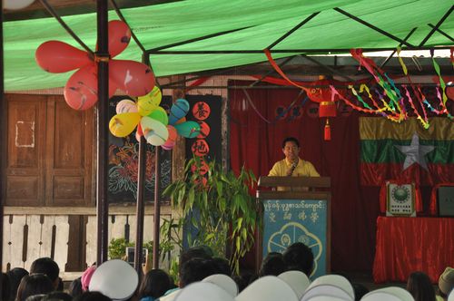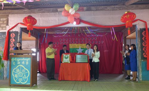 2015年3月22日,靳仪鳞副总领事一行,前往曼占参加了曼占勐稳中学举行的海外华文教育示范学校揭牌仪式活动。靳仪鳞副总领事副总、胡润组领事、孔子课堂中方主任何林教授、福庆学校李祖清校长、腊戌果敢文教会代表、贵楷勐稳文教会代表、曼德勒云华师范学院及各华校代表、还有200多位学生等参加了该活动。靳仪鳞副总领事,何林教授、李祖清校长都上台讲话。