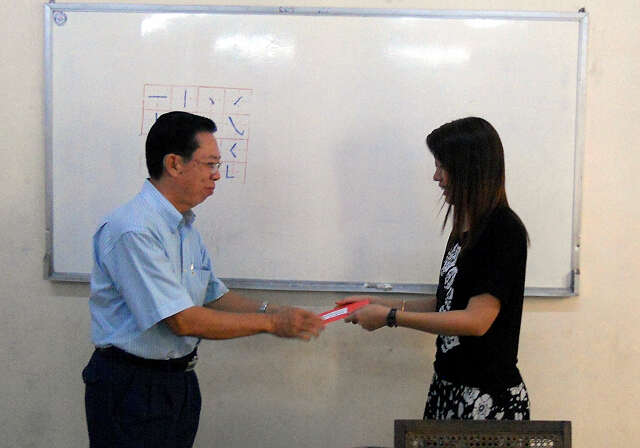 4月25日上午9点半,仰光正友语文与商业中心以例行会议的方式对刚刚结束的首届中青年教师课堂教学比赛进行了总结和表彰。此次会议由林长青校长主持,高汉德、苏章林、庄明良、叶福财、卢亚昌等五位董事出席了此次颁奖大会,评审委员秉着公平、公正、公开的原则,严格按照评分标准,在参加比赛的16位中青年教师中评选出了一个一等奖、两个二等奖、三个三等奖及若干优秀奖,马慧莉、彭金娜、杨丽清等教师有幸获奖,董事们一一为获奖者颁发证书,并给与重奖。