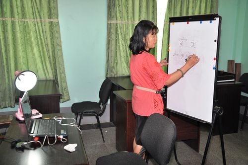 今日(5月9日)上午9:00时—11:00时;下午12:00时-13:00时,中国国家汉办孔子学院总部主办的“2015年缅甸海外志愿者视频面试”在福庆孔子课堂教师办公室内举行。福庆孔子课堂各教学点20余名汉语教师,今日首次参加了该别具特色的网络视频面试。据悉,明日该考试,还将持续,将有其他十余名教师参加视频面试。两天的面试,福庆孔子课堂报考者总人数达38名。