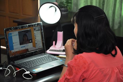 参试者们怀着忐忑的心情,按秩序进入‘考场’--— 办公室桌上的手提电脑的屏幕前,戴上耳机,几分钟后,北京主考方发来指令信息后,双方在QQ网络视频上,通过视频头开始‘面对面’进行‘面试’。对这样的‘别开生面’的‘远程、近距离’面试,对于一些‘刚入道’的年轻学员,不免有点心慌意乱,不知所措;但对于部分已获汉语国际硕士的‘资深者’,却一点也不感陌生,因为他们在‘硕士入学考’时,早已亲身体验过。