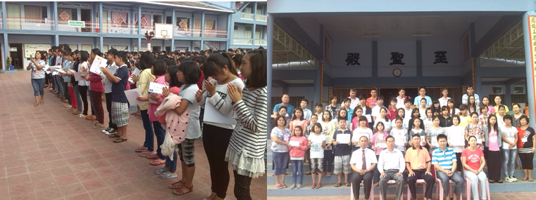 2015年5月26日上午,于本校举行了盛大的颁奖典礼。与会者中有明德总校副董事长常启固先生、杨常宏先生、扬善麟先生、郭荣和财政、姜鸿明校长及全校师生参加了颁奖典礼。大会首先由校长为本校在缅北果文文教会举行的书法、演讲比赛中获奖的同学表示祝贺!并希望再接再厉,努力拼搏争取更好的成绩。